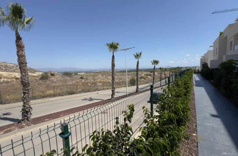 This spacious ground-floor corner unit offers three bedrooms and two bathrooms, perfectly suited for comfortable living or a holiday retreat. Bright and inviting, the open-plan living and dining area seamlessly connect to a large, extended terrace and beautifully maintained garden—ideal for outdoor entertaining or relaxing in the sunshine. The stylish kitchen features top-quality appliances and marble countertops, complemented by a utility room for added convenience. The master suite boasts an en-suite and private terrace access with scenic countryside views, while two guest bedrooms with built-in wardrobes accommodate family or visitors. Situated in a gated complex with communal gardens, a pool, and parking, this property combines luxury, comfort, and practicality. Located just minutes from the charming village of Algorfa and only a 17-minute drive to the coast, with Alicante Airport within easy reach, this modern apartment offers the perfect blend of tranquility and accessibility.