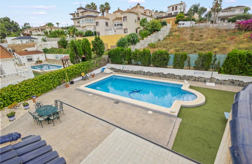 Situated on a spacious 1,040m² plot, the property features four generous bedrooms and three bathrooms, including a self-contained lower level with its own living space, kitchen, and large bedroom—ideal for guests. The bright, open-plan living area opens onto an easy-to-maintain garden with a private swimming pool, while a private solarium provides panoramic views of the countryside and coastline. Located next to the prestigious Tennis Club and close to La Finca Golf Resort, residents can enjoy first-class leisure facilities, outdoor pools, and tennis courts just steps away. The villa is ideally positioned only 15 minutes from the stunning Costa Blanca beaches and 35 minutes from Alicante Airport, with all amenities nearby.