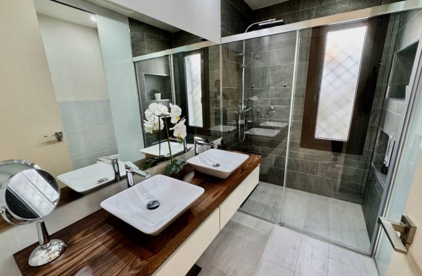 Denne stilige frittliggende villaen på 127 m2, bygget i 2017, har et moderne design med høykvalitets finish overalt. Den lyse, åpne stuen har hvelvet bjelketak og store skyvedører i glass som slipper inn rikelig med naturlig lys, og kobler seg sømløst til et moderne kjøkken med frokostbar og et separat vaskerom. Villaen tilbyr tre romslige dobbeltrom med innebygde garderober, inkludert en luksuriøs hovedsuite med tilgang til en privat terrasse og et elegant eget dusjrom. Et vakkert innredet familiebad fullfører interiøret.