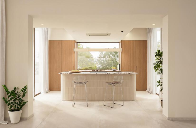 Los grandes ventanales inundan el interior de luz natural y crean una conexion perfecta entre los espacios interiores y exteriores, ideal para disfrutar del suave clima mediterraneo durante todo el año.