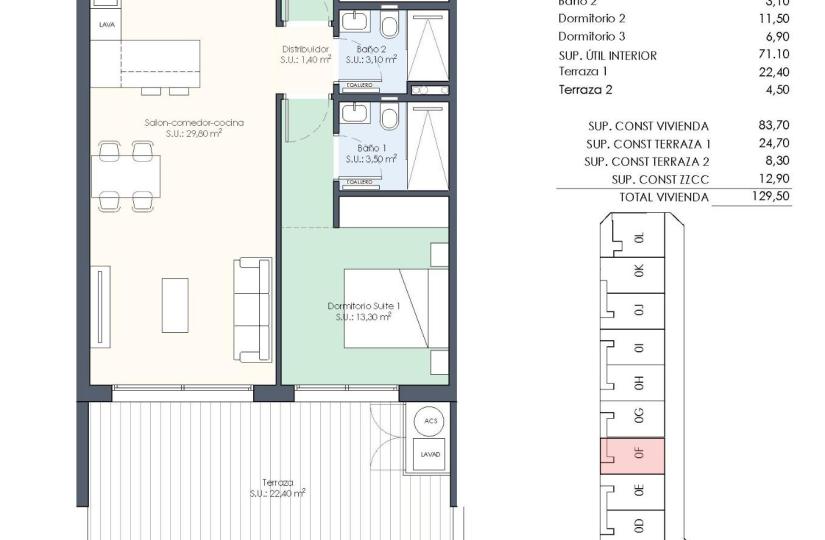 Die Wohnanlage besteht aus 35 Apartments und Penthausern mit 2, 3 und 4 Schlafzimmern und 2 Badern, offener Kuche mit Wohnbereich, Einbauschranken und Terrassen.