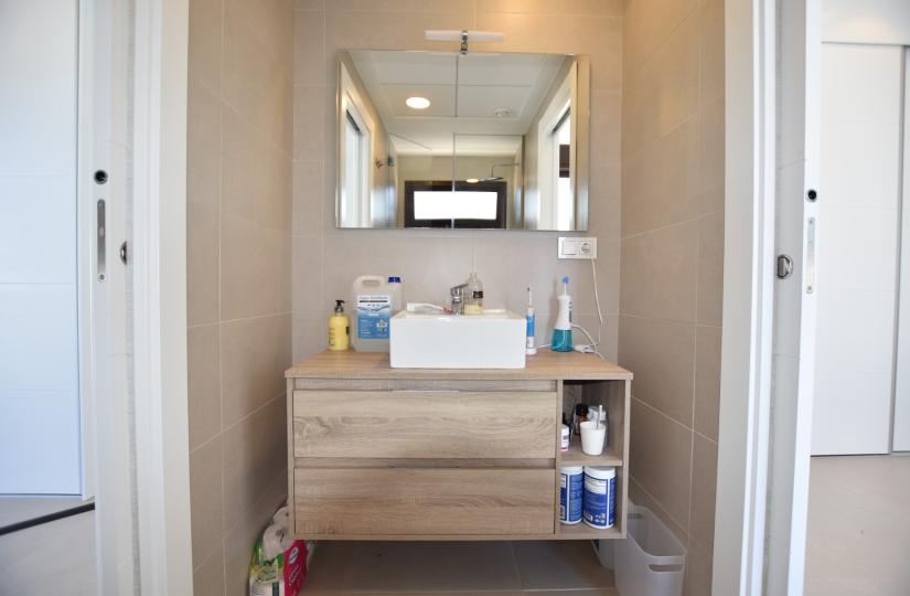 Upptäck din drömvilla i Benijofar, Alicante med denna fantastiska fristående villa med 3 rymliga sovrum och 3 moderna badrum. Med utsökta högkvalitativa ytbehandlingar är detta hem designat för komfort och stil. Det första sovrummet har ett eget badrum, perfekt för gäster, medan det stora kök-vardagsrummet skapar den perfekta miljön för familjesammankomster. På övervåningen delar ytterligare två sovrum ett vackert inrett badrum, och en stor terrass erbjuder lugn utsikt över poolen – perfekt för avkoppling. Dessutom erbjuder den helt färdiga källaren gott om utrymme och ytterligare ett badrum, vilket ökar hemmets mångsidighet.