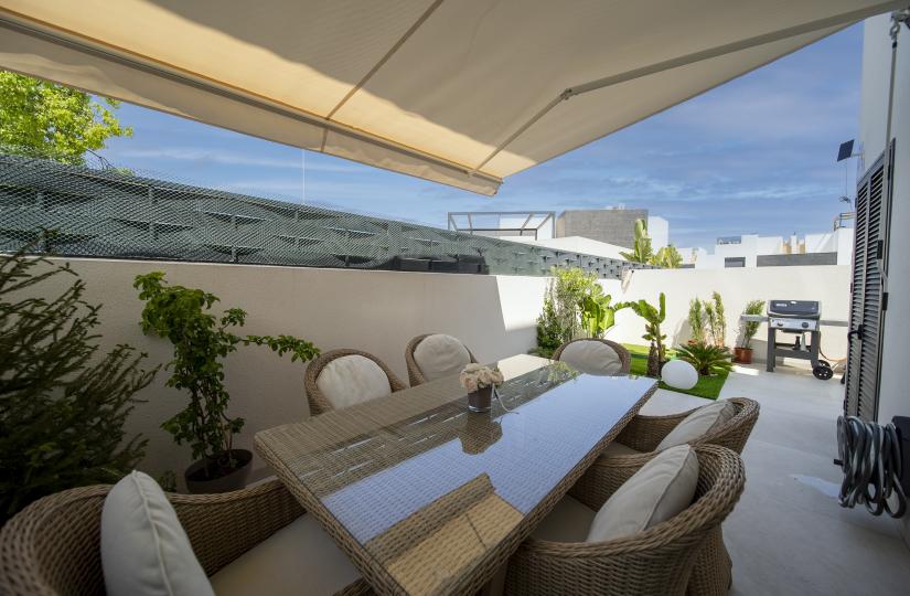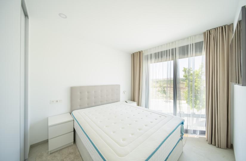 Deze volledig gemeubileerde woning is ontworpen voor moeiteloos wonen en biedt modern comfort met een strakke, eigentijdse uitstraling. De woning werd opgeleverd in 2024 en beschikt over twee ruime slaapkamers met inbouwkasten, twee stijlvolle badkamers – waarvan één met inloopdouche – en een open keuken met eethoek met uitzicht op het zwembad. De woning staat op een privéperceel van 150 m², compleet met een tuin, parkeergelegenheid en een barbecueplek. Stap buiten op het gemeubileerde terras met een uitschuifbaar zonnescherm of ontspan op uw eigen dakterras met panoramisch uitzicht. Deze villa is volledig uitgerust met airconditioning, een alarmsysteem, camera's en bewegingssensoren en is instapklaar.