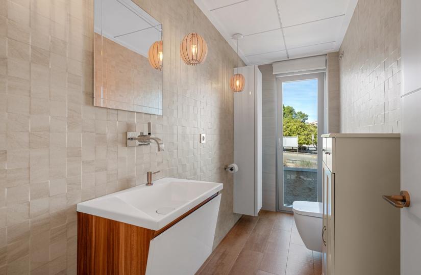 Udenfor suppleres den private pool af et poolhus med opbevaring, separat bruser og toilet samt et overdækket udendørskøkken og bar - perfekt til underholdning eller afslapning i solen. Yderligere funktioner inkluderer aircondition, elektriske persienner, termoruder, videotelefon, parkering og en have med pooludsigt. Denne ejendom, der blev bygget i 2016 og vedligeholdt i fremragende stand, tilbyder en luksuriøs og funktionel livsstil i en eftertragtet beliggenhed tæt på restauranter og butikker.
