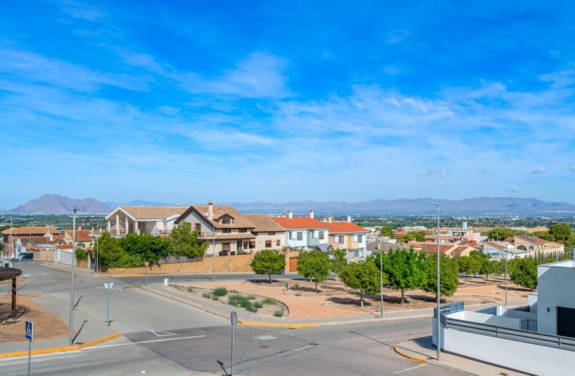 Oplev denne luksuriøse villa i Benijofar, Alicante, der tilbyder en perfekt blanding af komfort og alsidighed. Ejendommen kan prale af to rummelige soveværelser og to moderne badeværelser, med en generøs byggestørrelse på 115 m² beliggende på en 432 m² sydvendt grund. Øverste etage har en stor master suite med et påklædningsværelse og en stor terrasse, ideel til solbadning eller at nyde den naturskønne udsigt. Stueetagen er unikt designet som et professionelt praksisområde og består af et hovedrum, to behandlingsrum, et vaskerum, opbevaring og et fyrrum, hvilket giver fremragende funktionalitet til forskellige behov.