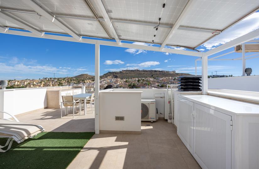 Parmi ses atouts supplémentaires, on compte un parking privé, un spacieux solarium sur le toit, un balcon et un cellier. La villa est vendue entièrement meublée et équipée d'électroménager, prête à vous accueillir. Que ce soit comme résidence principale, maison de vacances ou investissement locatif, cette villa offre une opportunité idéale de profiter du style de vie méditerranéen dans une région prisée et en plein développement d'Espagne.