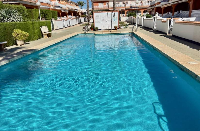 Eiendommen ligger i et sikkert, inngjerdet kompleks, og kan skilte med en lys, østvendt stue og et fullt utstyrt kjøkken med hvitevarer, supplert av et praktisk vaskerom. Alle soverom har innebygde garderober, og fasiliteter som klimaanlegg og takvifter sikrer komfort hele året. Utendørs kan du nyte tilgang til vakkert vedlikeholdte felleshager, et glitrende basseng og rikelig med parkeringsplasser, alt med nydelig utsikt over bassenget. Boligen ligger bare 10 minutter fra stranden, nær golfbaner og beleilig plassert i nærheten av lokale fasiliteter og flyplassen.