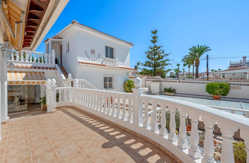 Oplev denne fantastiske fritliggende villa med tre soveværelser og fire badeværelser beliggende i det attraktive område Ciudad Quesada, Alicante. Perfekt beliggende kun en kort køretur fra det livlige bycentrum, tilbyder dette hjem en perfekt blanding af bekvemmelighed og middelhavscharme. Ejendommen ligger på en rummelig, fuldt lukket grund og kan prale af en velholdt have, en privat pool og rigelig udendørs plads til at nyde solskinnet. Den store terrasse foran er et ideelt sted til afslapning eller underholdning, mens en hyggelig glaseret udendørsterrasse tilbyder komfort året rundt.