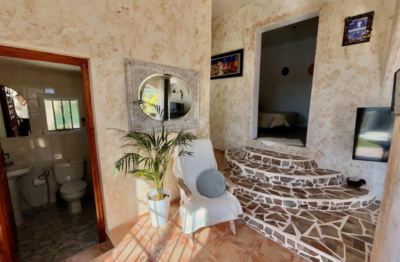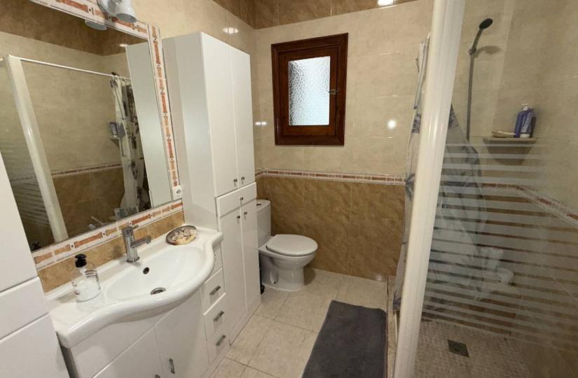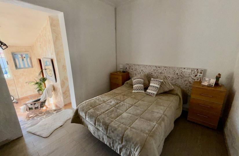 Set on a spacious 800 m² private plot, this beautifully maintained property features 223 m² of built space, perfect for comfortable living in a peaceful area just a short walk from local amenities. The main house includes three bedrooms, two bathrooms, and a guest toilet, complemented by generous living and dining areas with a cozy fireplace. A fully fitted kitchen, utility room, and glazed terrace add to the home's functionality, while air conditioning and ceiling fans ensure year-round comfort. Additionally, a self-contained one-bedroom apartment with its own bathroom and kitchenette provides flexible options for extended family, guests, or rental income.