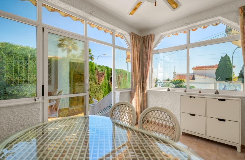 Entdecken Sie diese charmante Villa mit komfortablem und durchdachtem Wohnraum. Das ebenerdige Anwesen bietet zwei geräumige Schlafzimmer mit Einbauschränken und zwei Badezimmer, darunter ein modernes Bad mit Badewanne. Die offene Küche geht fließend in den Wohnbereich über und schafft so einen idealen Ort zum Entspannen und für gesellige Stunden. Eine verglaste Terrasse lädt zum Verweilen und Genießen der Sonne ein.