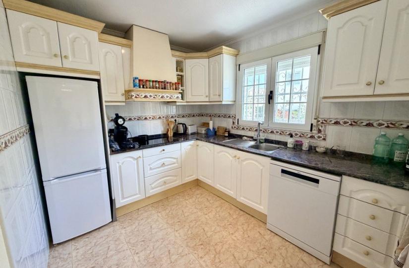 The villa features two fully equipped kitchens and two bright living areas, providing versatile living options. Outside, enjoy a beautifully maintained garden with a charming pergola, ideal for outdoor dining and social gatherings, with plenty of room for a pool or additional leisure areas. The property includes a private garage and is located just a two-minute walk from La Marquesa Golf Course. Situated in the highly desirable Ciudad Quesada area, residents benefit from nearby amenities such as restaurants, supermarkets, medical centers, and leisure facilities, all within an excellent climate.