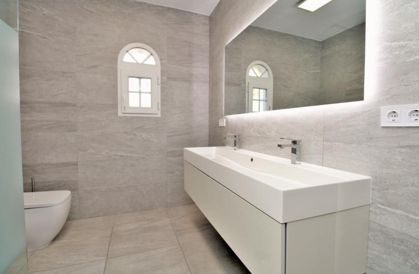 Villaens hovedetasje, som nylig ble renovert til en høy standard, har en lys, romslig stue med spiseplass, et fullt utstyrt kjøkken og et vaskerom. To solterrasser gir perfekte steder å slappe av mens du nyter utsikten, med en utvendig trapp som fører til et privat takterrasse. I underetasjen finner du hovedsoverommet med eget bad og direkte tilgang til hagen og terrassen, samt to ekstra dobbeltsoverom og et moderne familiebad, alle med innebygde garderober.