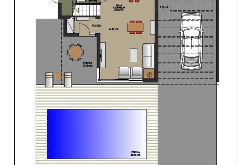 De actie omvat verschillende modellen van woningen met 2,3,4 en tot 5 slaapkamers. Deze bijzondere villa bestaat uit 4 slaapkamers, 2 badkamers, een volledig uitgeruste Amerikaanse keuken, een open woon-eetkamer met veel verlichting, toegang tot de tuin en het prachtige zwembad.