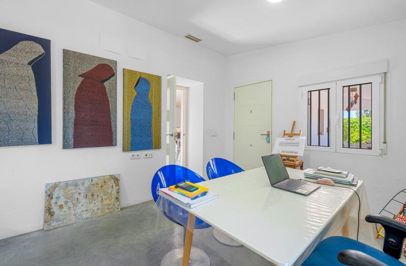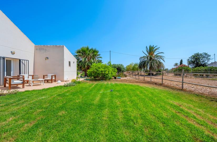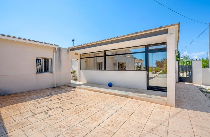 Belägen på över 6 000 m² mark har detta rymliga hem på 200 m² fem sovrum och fyra badrum, perfekt för familjeboende eller en semester. Det öppna köket ansluter sömlöst till det inbjudande vardagsrummet och skapar ett varmt och funktionellt utrymme. Utomhus kan du njuta av en stor täckt terrass för måltider utomhus, en privat pool omgiven av frodiga trädgårdar och mångsidiga stall. Ytterligare höjdpunkter inkluderar en utomhusgrill, ett stort oberoende kontor med egen ingång och gott om parkeringsplatser på tomten. Beläget bara några minuter från Elche, Santa Pola och stränderna på Costa Blanca, erbjuder denna fastighet lugn, avskildhet och enkel tillgång till bekvämligheter i en vacker naturlig miljö.