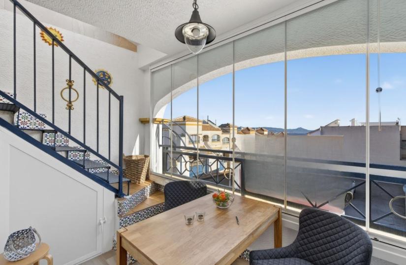 Leiligheten har klimaanlegg i alle rom, noe som sikrer komfort året rundt, og presenteres i utmerket stand. Beboerne har tilgang til tre store felles svømmebassenger, frodige grøntområder og et fredelig, velholdt kompleks, noe som gjør det til et utmerket valg for ferier, permanent opphold eller investeringsformål. Denne eiendommen ligger bare fem minutter fra Carabassi-stranden, kjent for sitt krystallklare vann og naturlige sanddyner, og er omgitt av restauranter, kafeer, butikker og naturskjønne tur- og sykkelstier.