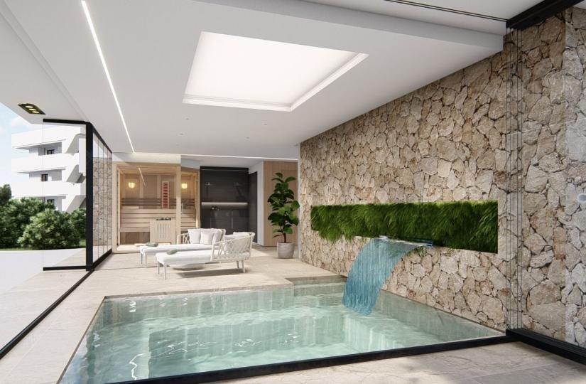 Dessutom och tack vare de fem nivåerna i vissa av de block som utgor bostadsområdet, alla i soderlage, inkluderar vi i våra lyxiga takvåningar, fullt utrustat kok på solariumet, utomhusdusch (varmt-kallt vatten) och jacuzziområde, for att fullborda den unika upplevelsen av att bo framfor en unik och oovertraffad naturmiljo.