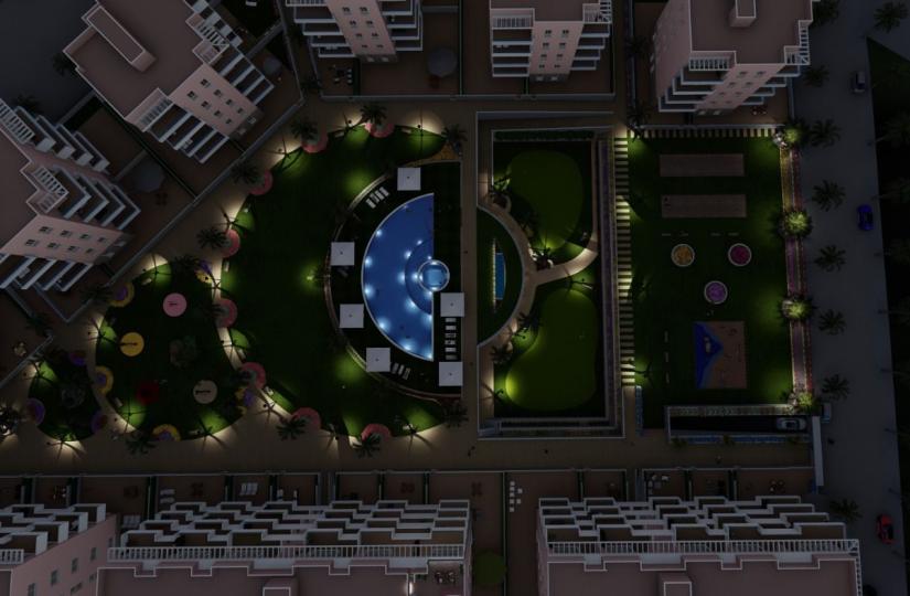 Complex met zwembad, groene zones, golfbanen, Spa, speeltuin, bio-gezondheidsmachines en sportzones.