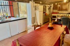 The interior boasts a separate kitchen, a cozy fireplace, ceiling fans, and a practical utility room. The outdoor space is perfect for al fresco living, featuring an outside kitchen and ample room for garden dreams. Although the property requires renovation, its potential is boundless, making it an ideal project for those looking to create a unique home close to nature.