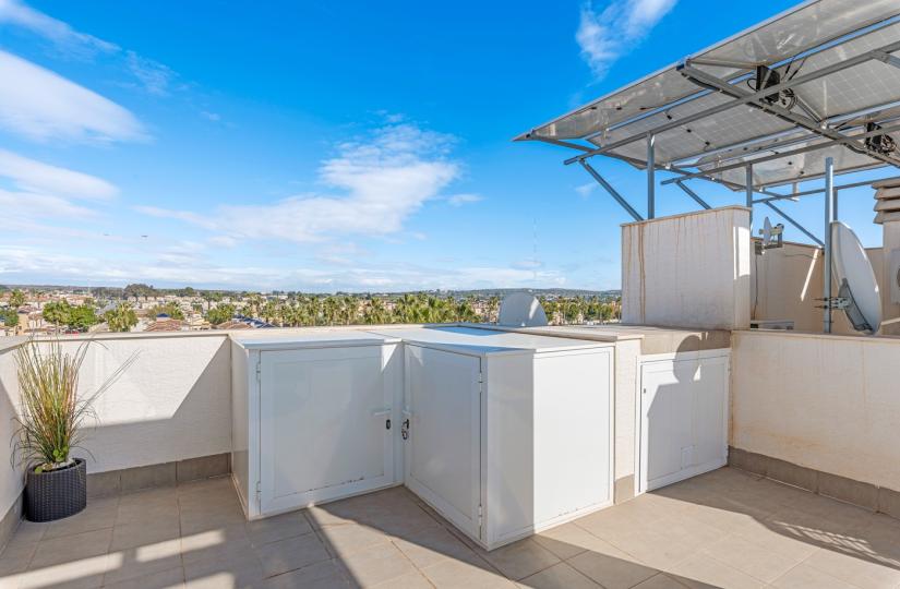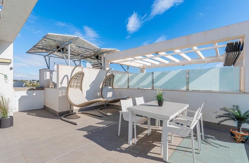 Discover this modern penthouse in the desirable El Raso neighborhood, offering a perfect combination of comfort, style, and luxury amenities. Featuring 2 spacious bedrooms and 2 bathrooms, this property provides an ideal space for relaxing living or a smart investment on the Costa Blanca. The bright, open-plan living area seamlessly connects to a contemporary kitchen, making daily life convenient and enjoyable. A large south-facing solarium enhances the property, providing an excellent outdoor space for sunbathing, barbecues, or unwinding under the warm Mediterranean skies.