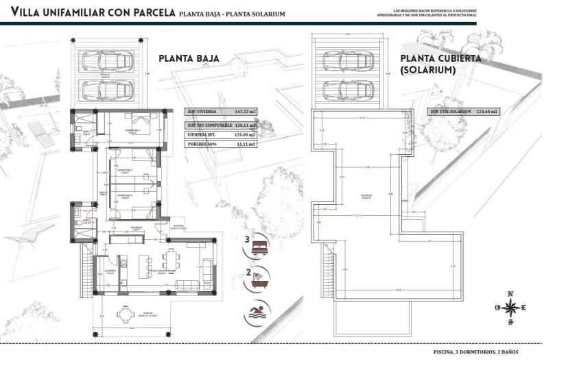 The villa is distributed on one single floor and has been designed to combine comfort, functionality and natural light. It offers 3 bedrooms and 2 bathrooms, including a master bedroom with ensuite bathroom. The open plan living and dining area connects seamlessly with the modern kitchen, creating a bright and welcoming living space.