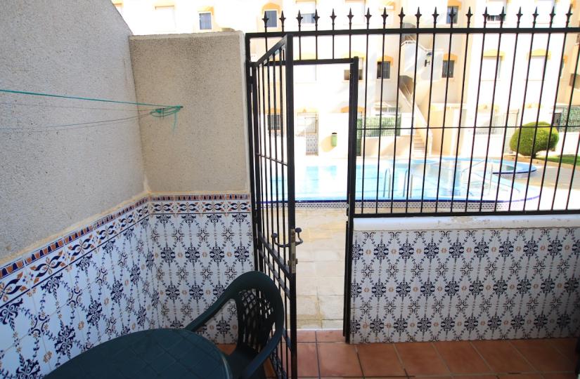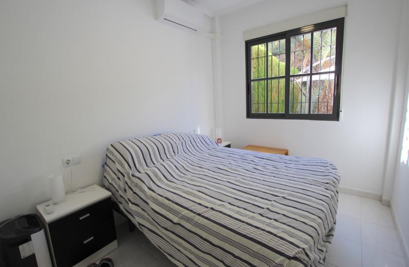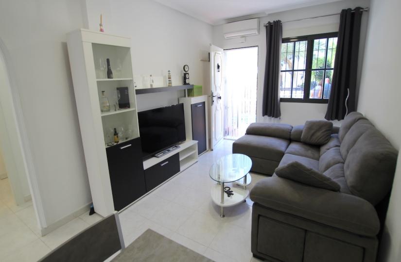 Die Wohnung befindet sich in der etablierten Wohnanlage Torrevista Rocio und bietet einen großzügigen, nach Süden ausgerichteten Garten mit schönem Parkblick – ideal zum Entspannen im Freien. Der helle Wohn- und Essbereich ist klimatisiert, und die modernisierte Küche bietet viel Stauraum. Die beiden Doppelschlafzimmer, ebenfalls klimatisiert und mit Einbauschränken ausgestattet, werden durch ein Familienbad mit ebenerdiger Dusche ergänzt. Ein Schlafzimmer hat Zugang zu einem privaten Innenhof mit zusätzlichem Stauraum und direktem Zugang zum Gemeinschaftspool und Garten.