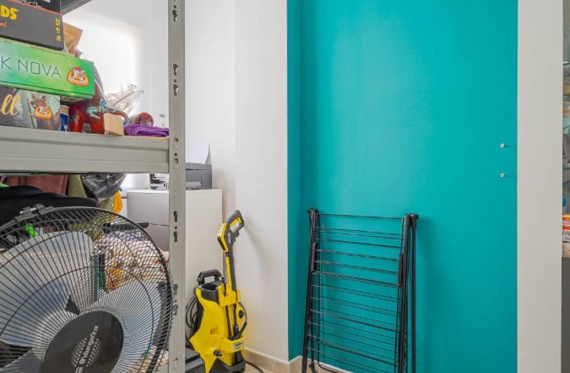 Inside, you'll find a welcoming living-dining area with direct access to a sizable terrace, a fully equipped kitchen, and a master suite with fitted wardrobes. The second bedroom and bathroom with shower complete the functional layout. Additional highlights include security alarm, mosquito screens on all windows, air conditioning, and partly furnished interiors.