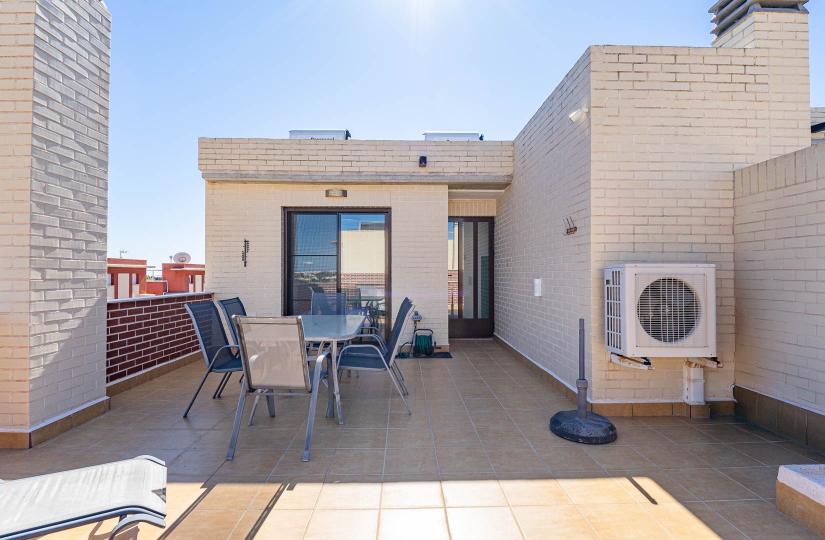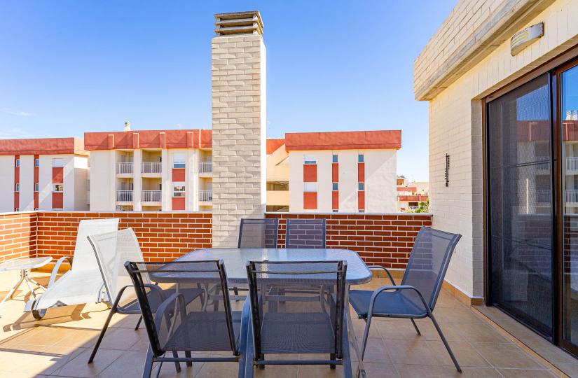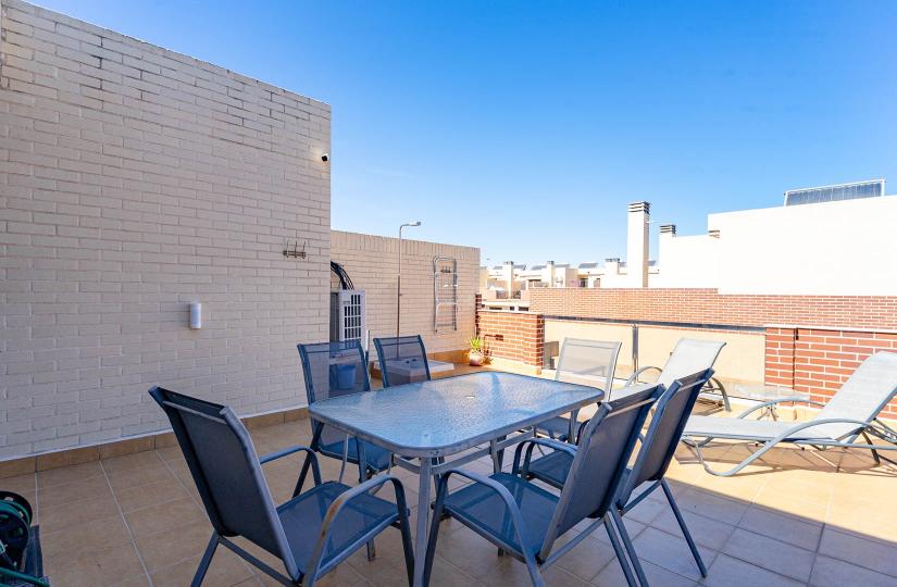 Discover this modern duplex apartment, offering an excellent opportunity for permanent residence, holiday getaways, or rental investment. Spanning 81.52 m² of bright living space, the property features three bedrooms and two bathrooms, with a spacious main terrace and a private rooftop solarium that provides open views and sunshine throughout the day. Located on the top floor of a contemporary community built in 2015, this unit benefits from a prime position with no direct overlooking neighbors.