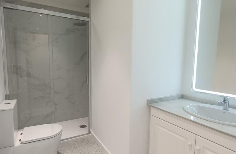 Les 83 m² habitables de l'appartement sont intelligemment agencés pour proposer deux chambres spacieuses et deux salles de bains modernes, dont une avec une élégante douche à l'italienne, idéale pour se détendre après une longue journée. La rénovation, réalisée avec un grand souci du détail, a fait appel à des matériaux haut de gamme tels que des carreaux de porcelaine grand format et des éléments en pierre naturelle. Il en résulte un intérieur harmonieux et élégant, alliant confort et raffinement.