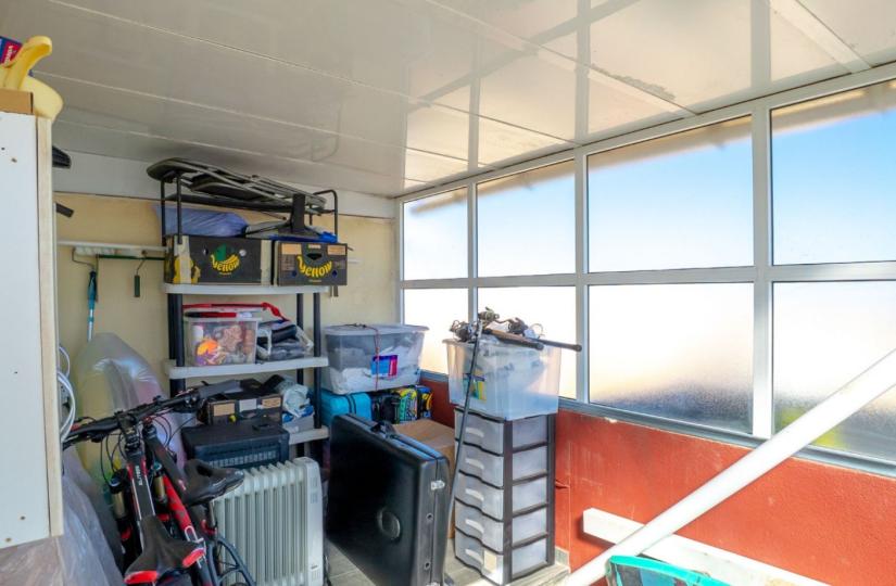 Built in 2005, this southwest-facing property includes amenities such as air conditioning, a garden, laundry area, storage room, reinforced door, porch, terrace, and more. An excellent opportunity to own a piece of the Costa Blanca in Villamartín—viewings are highly recommended.