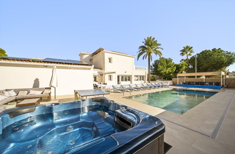 Det smukt anlagte udendørs område kan prale af en privat swimmingpool med jacuzzi, skyggefulde pergolaer, chill-out-zoner og rigelig parkering til flere køretøjer. Ejendommen er fuldt møbleret og udstyret (eksklusive personlige ejendele), klar til øjeblikkelig indflytning og har aircondition overalt sammen med solpaneler for energieffektivitet.