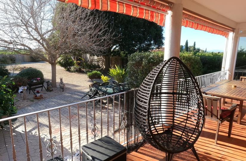 The property sits on a generous 2000 m² plot, boasting a large garden, a private pool, and a hot tub, perfect for relaxation and outdoor entertaining. A covered veranda and multiple seating areas provide ideal spots to enjoy the mountain and country views, while the outdoor kitchen adds to the appeal. Inside, you'll find a bright living area, a functional kitchen with appliances, air conditioning, and a cozy indoor fireplace, complemented by fitted wardrobes and heated towel rails.