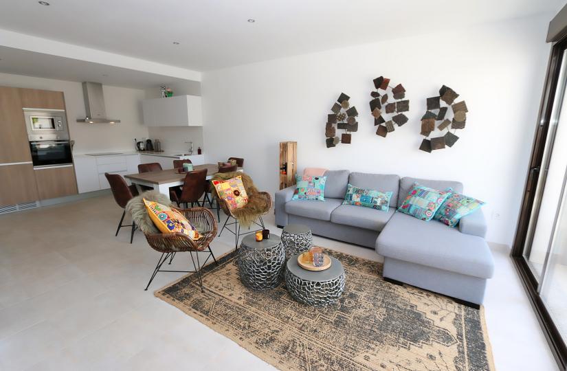 Denne fullt møblerte eiendommen ligger bare en kort spasertur fra sentrum, butikker og restauranter, og tilbyr komfort og bekvemmelighet i en førsteklasses beliggenhet. Med tre soverom og to bad åpner den lyse og moderne stuen ut mot en solrik terrasse, ideell for å nyte middelhavsklimaet. Leiligheten har et moderne amerikansk kjøkken, klimaanlegg, gulvvarme på badene og en privat terrasse med terrassemøbler. I tillegg kommer den med fire sykler og en bod, perfekt for å utforske området eller oppbevare strandutstyr.