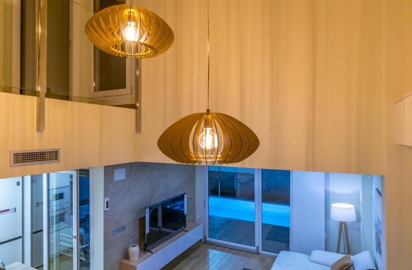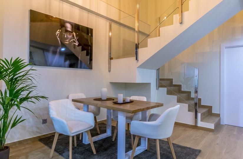 Villas build over 2 floosr, with 3 bedrooms and 3 bathrooms, open plan kitchen with the lounge area, fitted wardrobes, terrace, private garden with the pool and parking space.