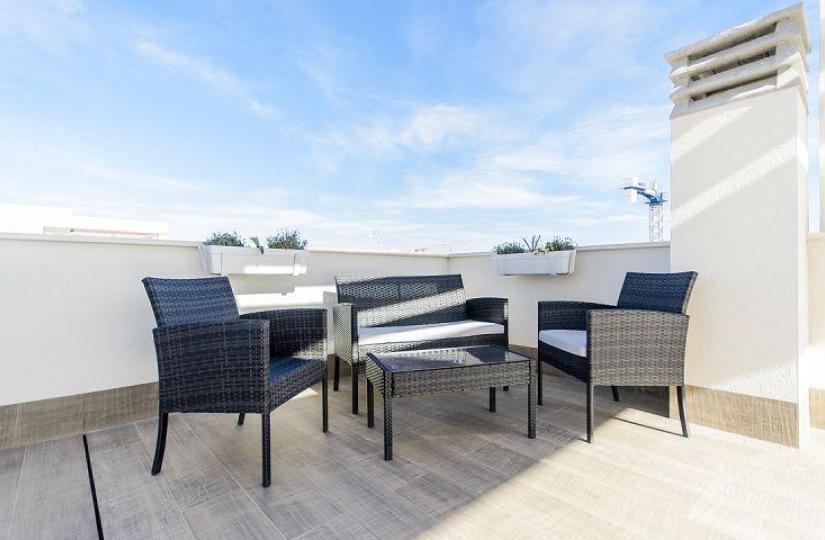 Detached villa with 3 bedrooms, 3 bathrooms, with a SOUTH orientation. It has a 12 m2 porch - pergola on the ground floor and a 45 m2 solarium on the roof.