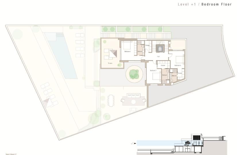Mit 305 m² bebauter Flache auf einem großzugigen 935 m² großen Grundstuck verfugt diese Villa uber 4 geraumige Schlafzimmer mit eigenem Bad, eine Gastetoilette und einen offenen Kuchen- und Wohnbereich, der nahtlos mit großen Terrassen und einem privaten 55 m² großen Swimmingpool verbunden ist. Das Design sorgt den ganzen Tag uber fur naturliches Licht und einen freien Panoramablick und schafft so eine helle und einladende Atmosphare.