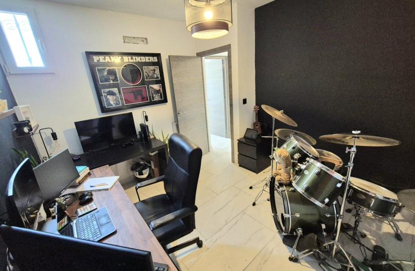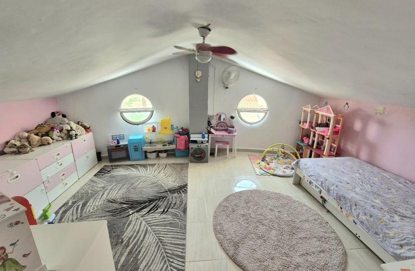 Spread over three floors, the property features five generous bedrooms and three bathrooms, making it ideal for large families or those who love hosting guests. The large attic room provides versatile space for a home office, gym, or extra bedroom, while the living areas are complemented by a cozy log fire and full air conditioning for year-round comfort.