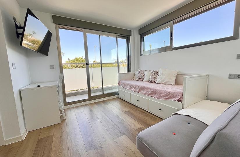 Cette propriété est entièrement meublée et prête à emménager. Elle offre des espaces de vie lumineux et ouverts donnant sur une spacieuse terrasse panoramique baignée de soleil toute la journée. Un solarium privé offre une vue panoramique sur la mer, idéale pour se détendre ou recevoir. Les résidents bénéficient d'un accès direct à une piscine commune immaculée, idéale pour se rafraîchir après une journée à la plage. Parmi les détails soignés, on compte des stores électriques, un système de sécurité automatisé, la climatisation, des placards intégrés et un chauffage au sol luxueux dans les salles de bain. Avec son emplacement privilégié, ses finitions haut de gamme et ses équipements modernes, cette maison de ville est un havre de paix idéal pour profiter du style de vie méditerranéen.
