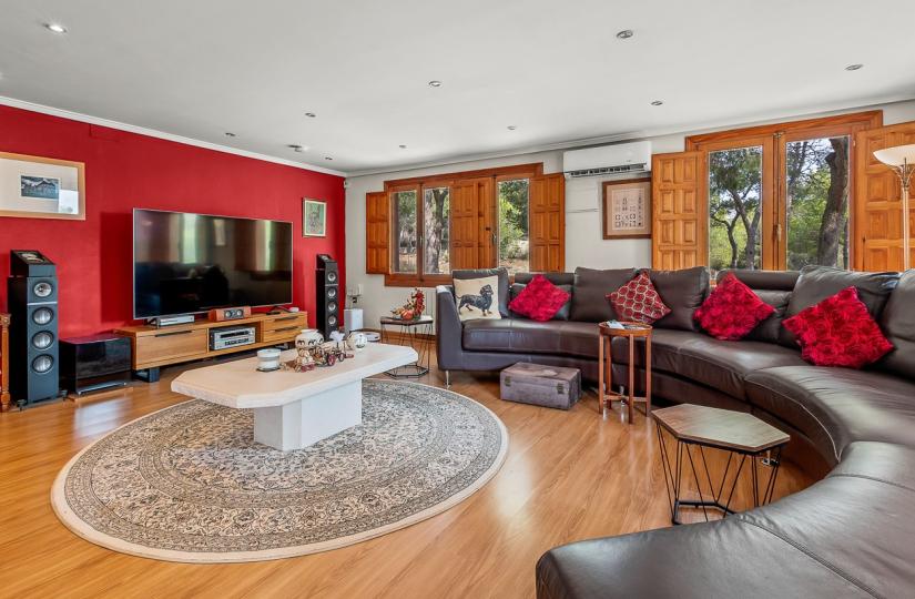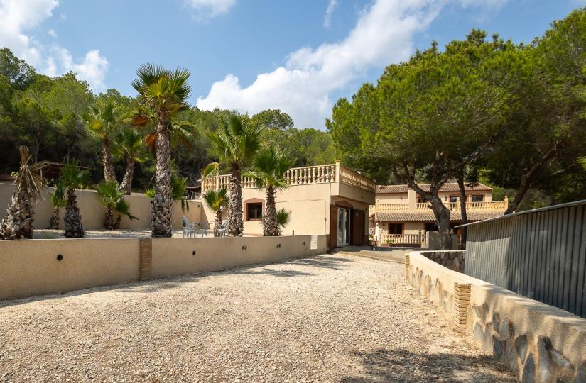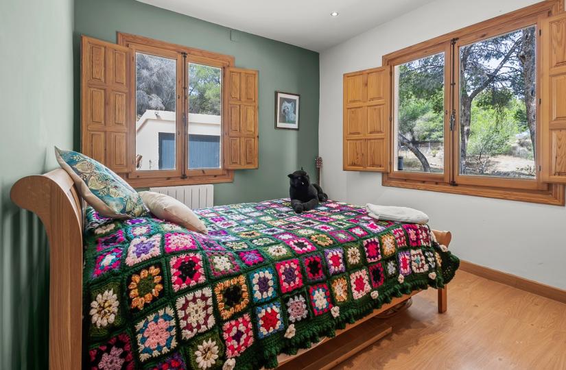 Beliggende på en stor grund på 11.000 m² midt i frodig middelhavsnatur, tilbyder denne to-etagers fritliggende villa privatliv og plads til en afslappet landlig livsstil. Hjemmet har fire lyse og rummelige soveværelser, hvoraf to er placeret på hver etage, og to komplette badeværelser, suppleret af et udendørs toilet ved den indbydende pool. Den hyggelige stue med en traditionel brændeovn, kombineret med et moderne køkken med en køkkenø, skaber et ideelt sted til familiesammenkomster og underholdning. Udendørs kan du nyde solbadning på terrasserne omkring den private pool, eller slappe af på den hævede terrasse med jacuzzi med udsigt over den naturskønne landskabsudsigt. Ejendommen omfatter tre garager, hestestalde, en folde, sadelrum og plads til op til fem heste, hvilket gør den perfekt til hesteentusiaster. Yderligere funktioner inkluderer solpaneler til bæredygtig energi, aircondition, opvarmning og rigelig opbevaring.