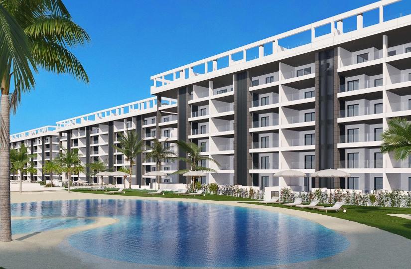 Nieuwbouw wooncomplex van 362 appartementen met grote gemeenschappelijke ruimtes in Torrevieja.
