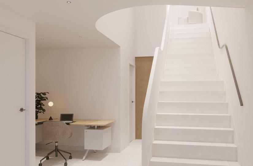 Modern ontwerp en energie-efficientieDit project valt op door de elegante mediterrane architectuur met een avant-gardistisch tintje. Ontworpen volgens de Passivhaus-norm, garandeert het een duurzame constructie die maximaal thermisch comfort en energie-efficientie biedt, waardoor het verbruik en de impact op het milieu worden verminderd.
