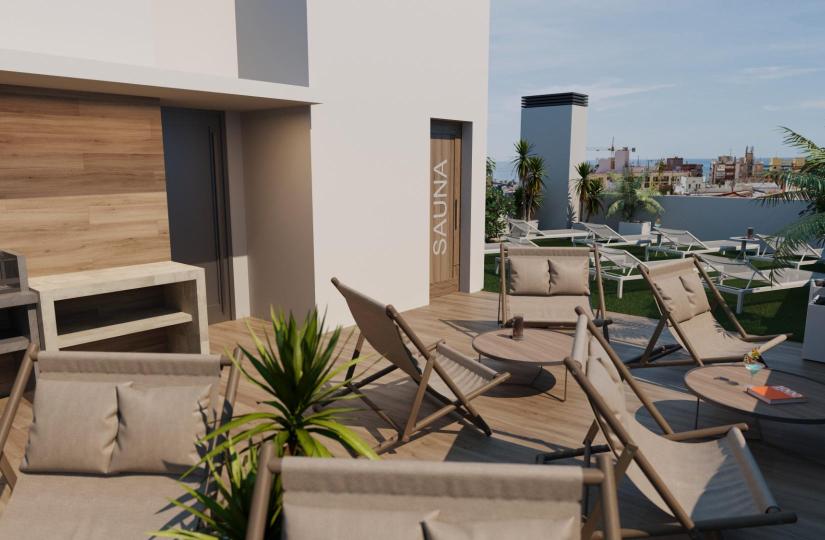 Residents can enjoy an exclusive roof-top solarium with communal swimming pool, barbecue, sauna and sunbathing area with sun loungers, accessible by lift or stairs. This private area is perfect for relaxing, sunbathing and enjoying panoramic views of the city. It offers a peaceful retreat above the bustling streets of Torrevieja and adds significant value to the development.