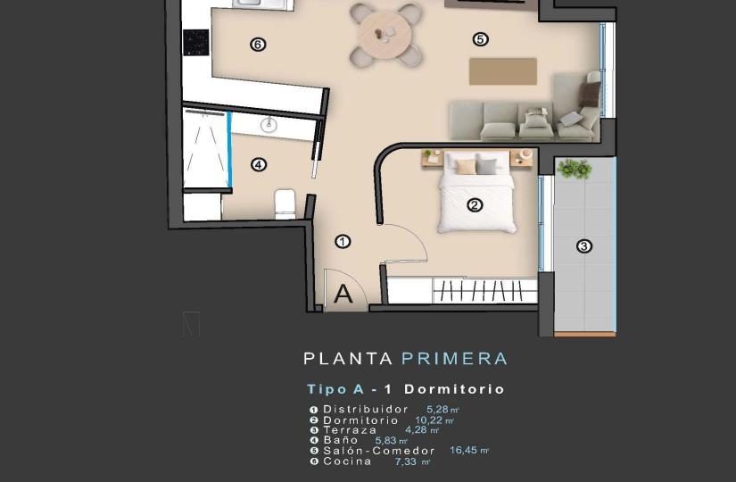 Apartment with 1 bedroom and 1 bathroom in Torrevieja, Alicante.