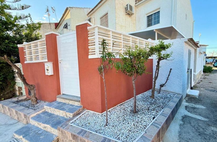Z 47-metrową powierzchnią zabudowy i 26-metrową prywatną działką, oferuje dwie przestronne sypialnie dwuosobowe oraz częściowo odnowioną łazienkę. Orientacja północno-wschodnia zapewnia poranne słońce, a teren zewnętrzny jest idealny do relaksu, otoczony drzewami owocowymi, takimi jak laur, śliwa, nektarynka, cytryna i pomarańcza. Dodatkowe udogodnienia obejmują schowek, klimatyzację, ogrzewanie, drzwi pancerne i meble. Nieruchomość znajduje się zaledwie pięć minut spacerem od parku Plaza Lira, w którym znajduje się publiczny basen i atrakcje na świeżym powietrzu, oraz około trzech kilometrów od morza.