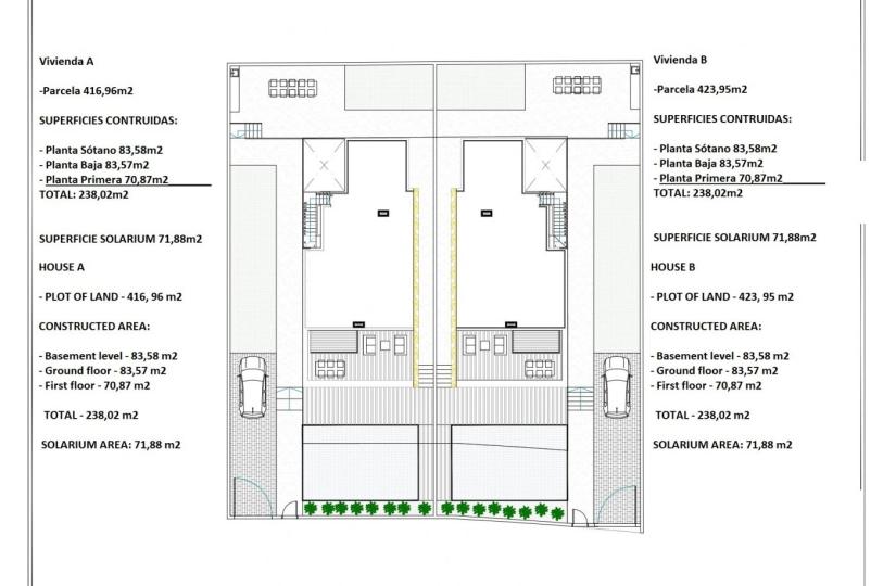 Villas a 4 chambres a coucher, 4 salles de bains, cuisine ouverte sur le salon, placards, jardin prive avec la piscine et un espace de stationnement hors route, solarium prive et sous-sol.